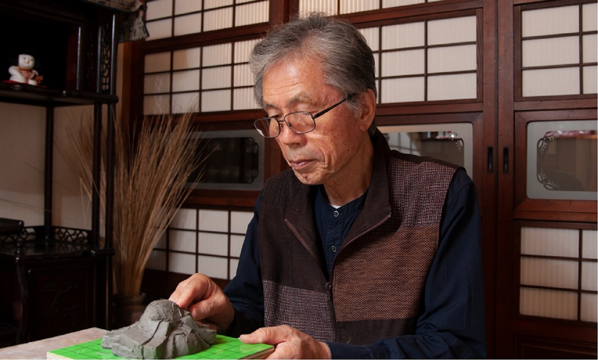 彫刻の経験を活かした、鋭い角と柔らかな曲線を使い分けた人形が特徴的な人形師。
