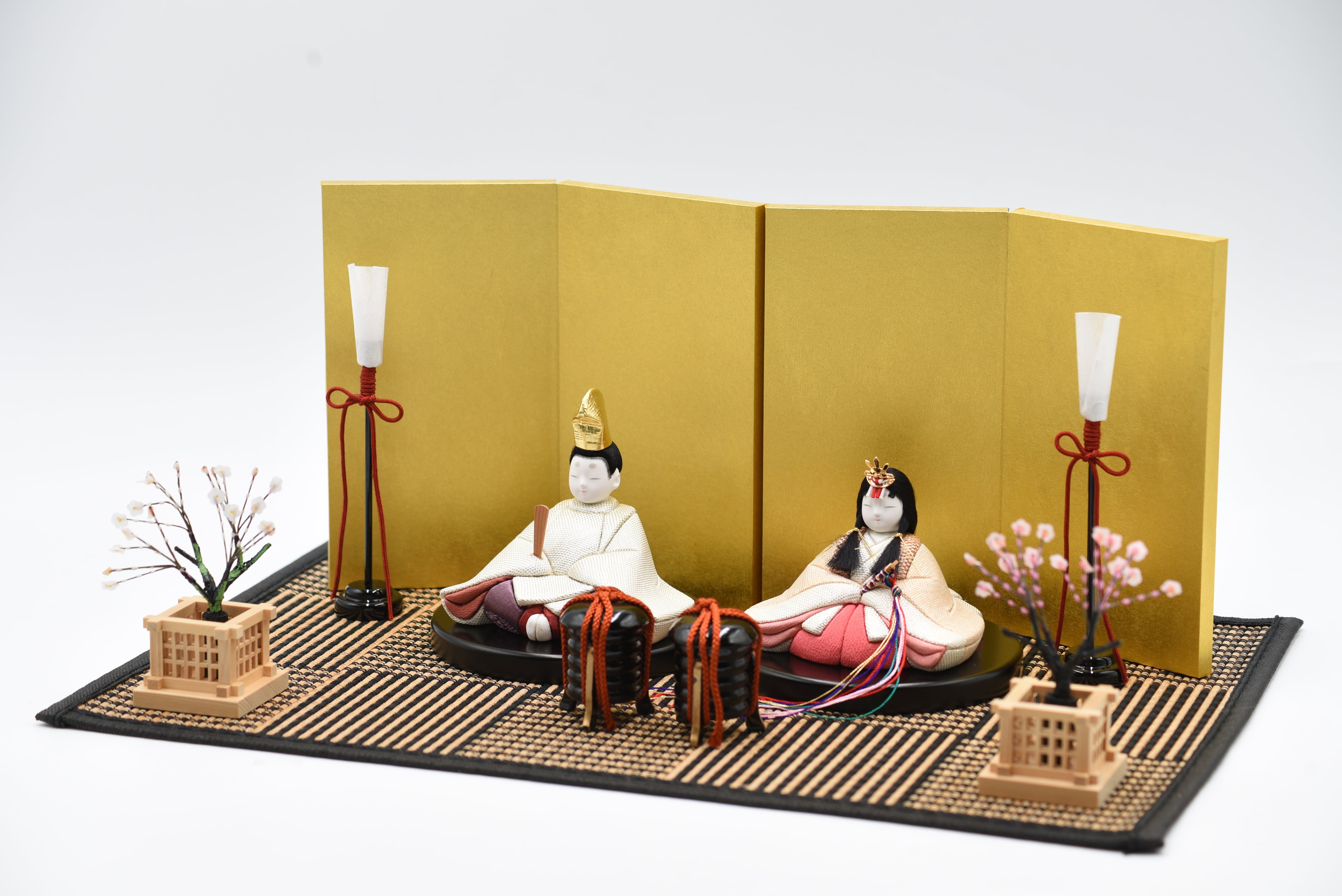 紅白梅の貝合わせや戌筥をセットした写真も掲載致しております。また、屏風や油灯などの小道具をお付けして販売することも出来ますので