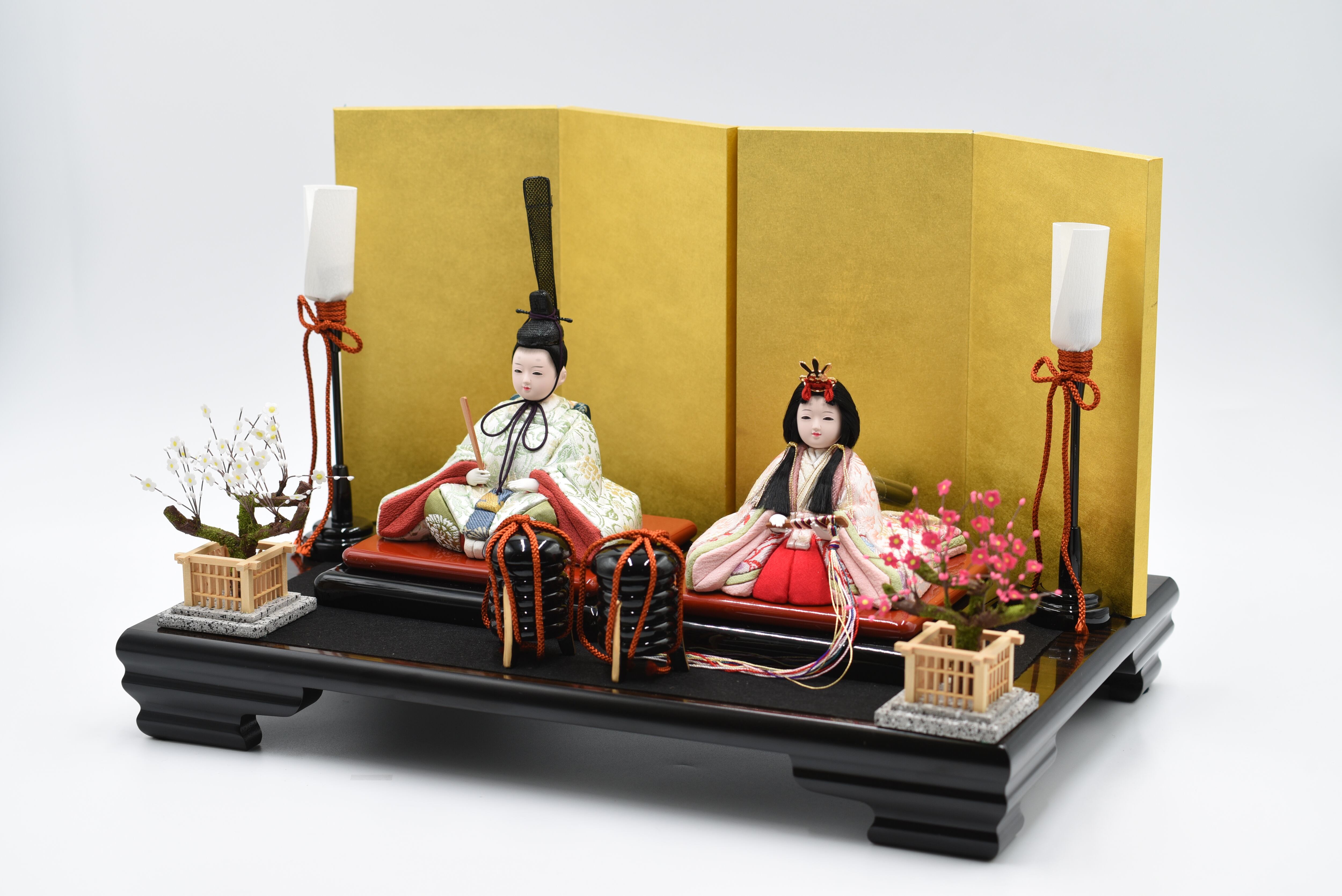 紅白梅の貝合わせや戌筥をセットした写真も掲載致しております。また、屏風や油灯などの小道具をお付けして販売することも出来ますので