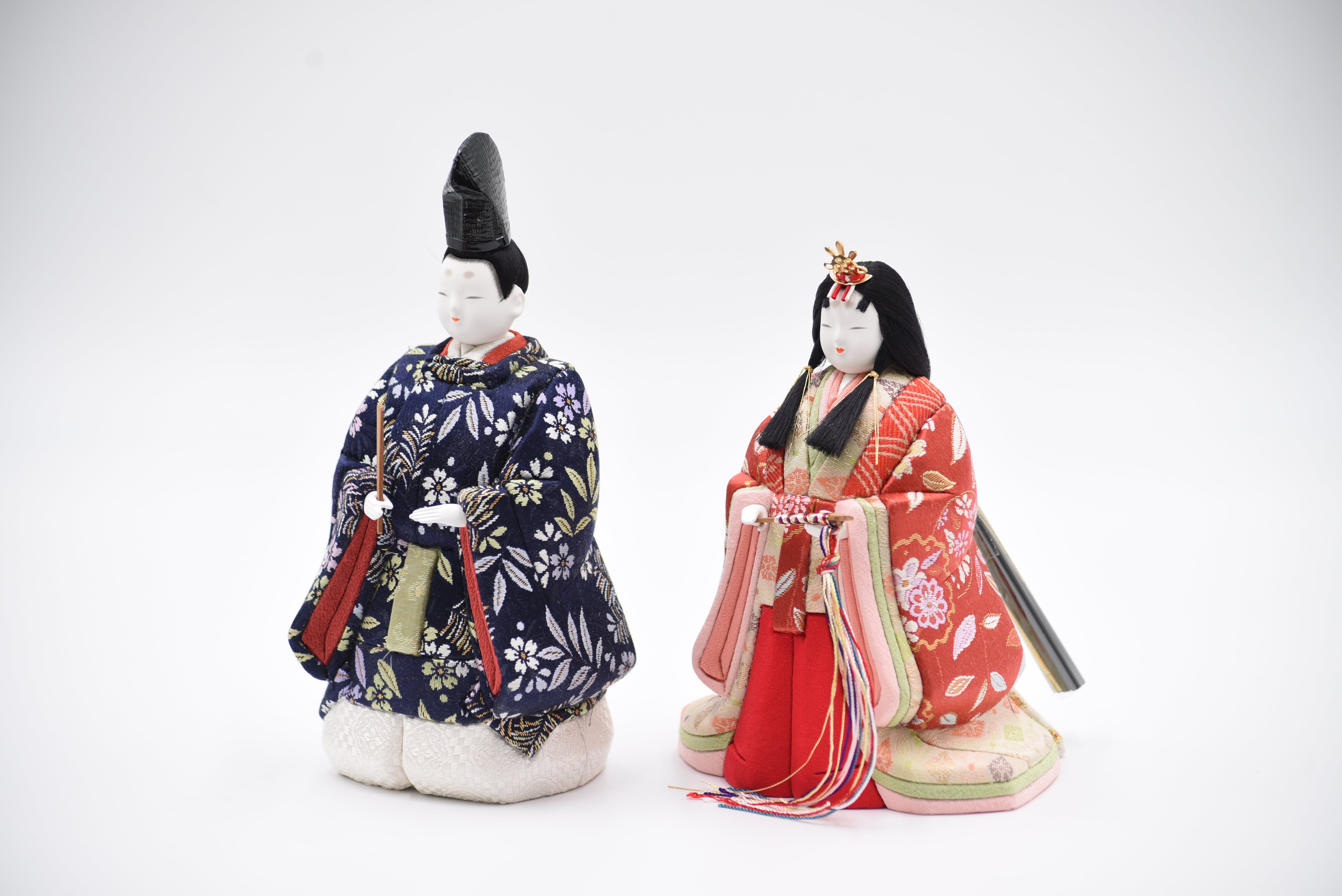 衣裳を着せ付けた衣裳着人形に比べて、衣装(布地)を「木目込む」という技法から着崩れがしにくく、保管しやすいお人形になっております。型崩れの心配がないので、引っ越しなどが多い方でも安心です!