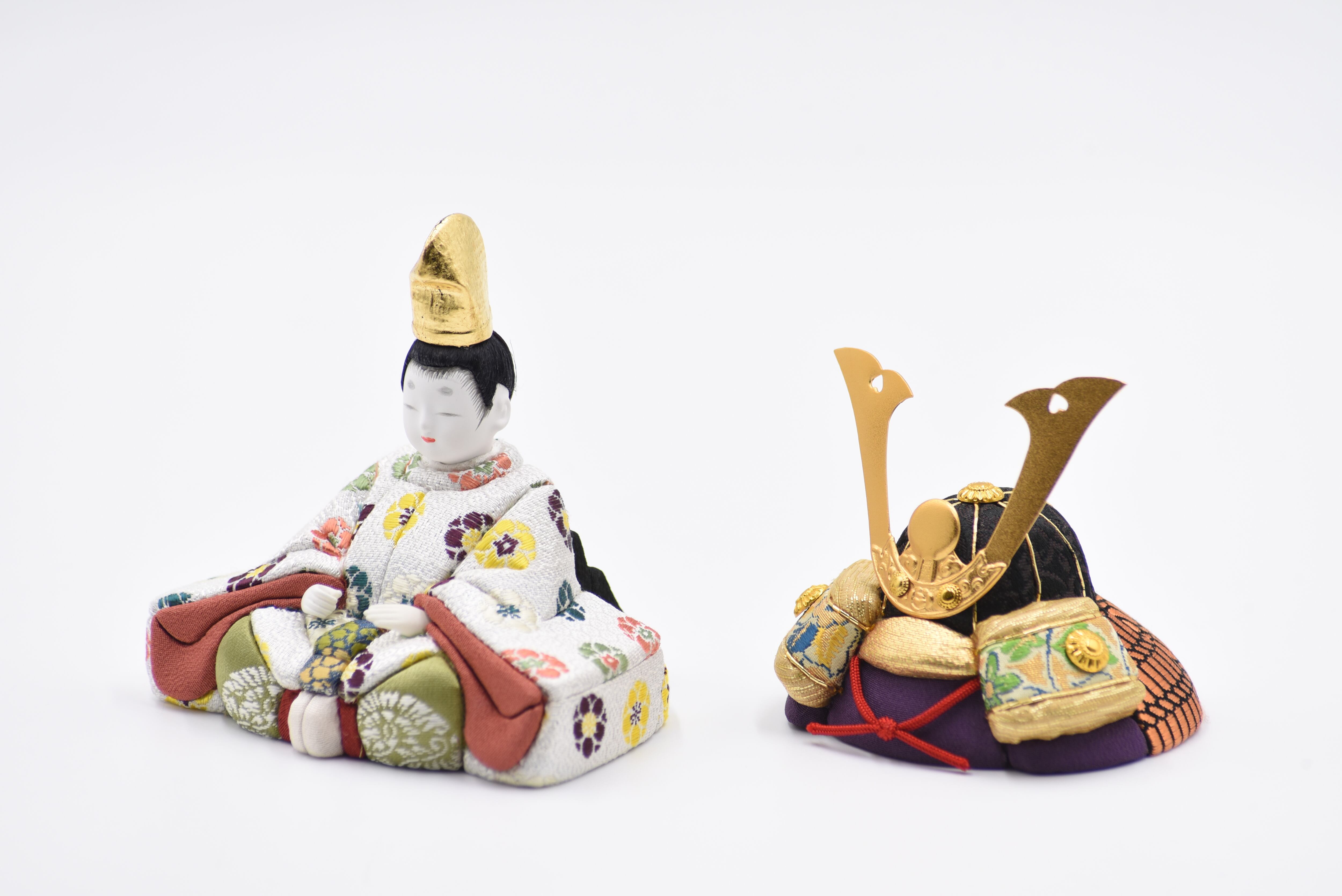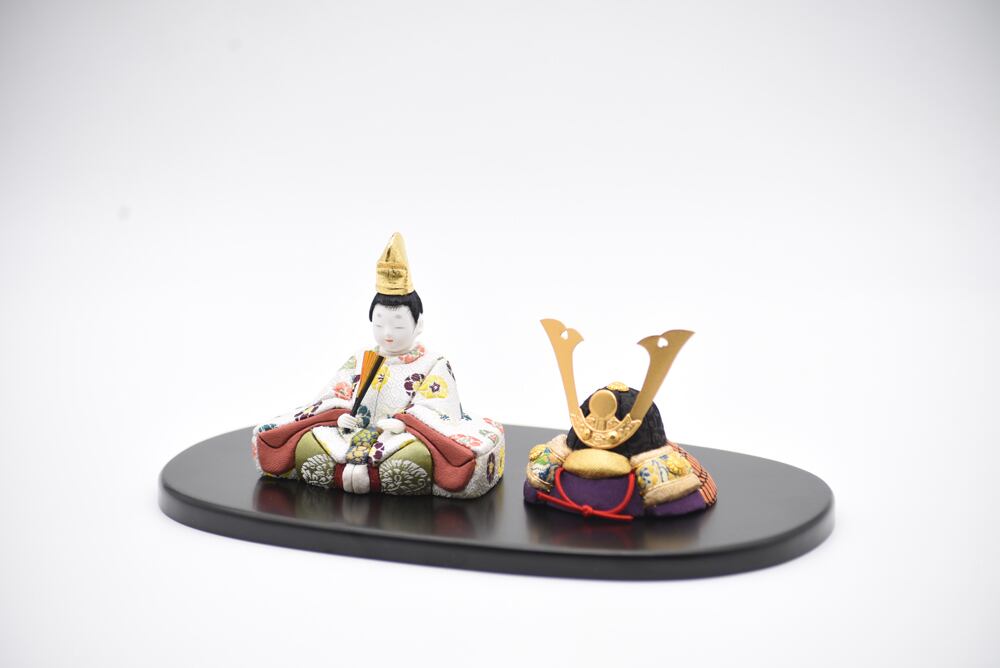 お人形と兜が一体となった、上品で洗練された五月人形。